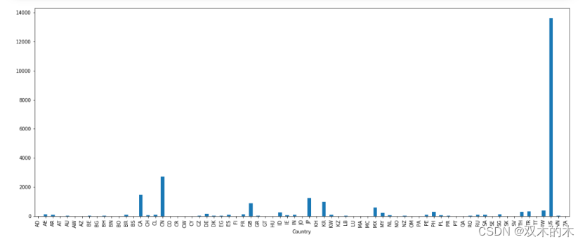 # 按照国家分组,求出每个国家的星巴克零售店数量 count = starbucks.groupby(['Country']).count()