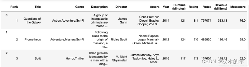 现在我们有一组从2006年到2016年1000部最流行的电影数据