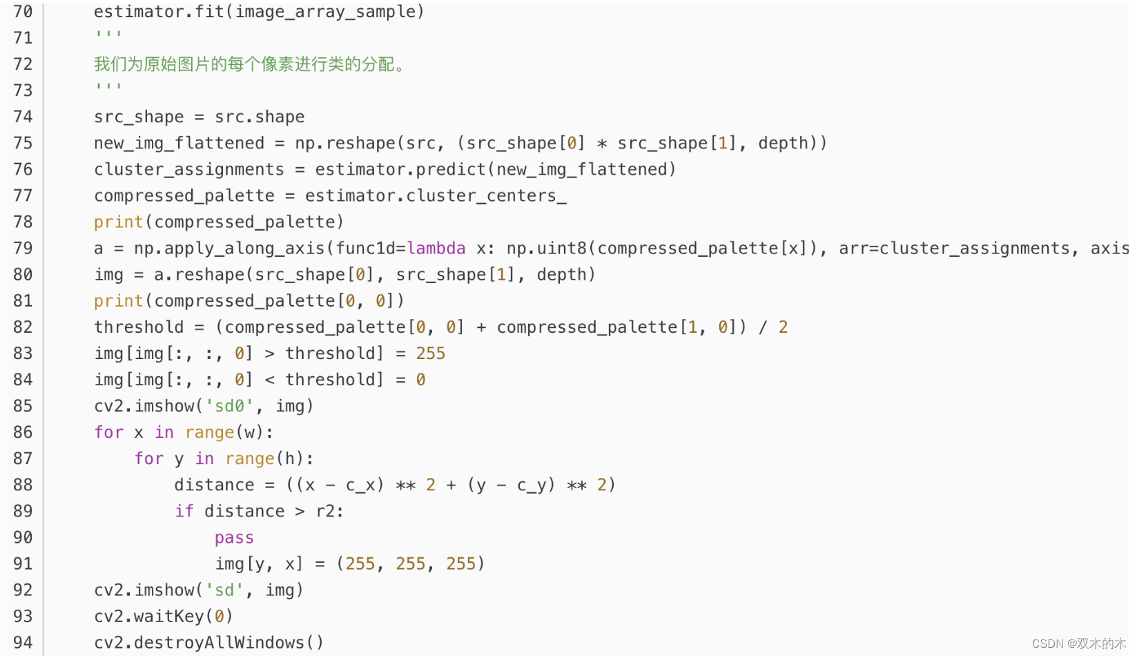 下面对上图进行k-means二值化,由于途中的阴影,所以只截取原图的0.6(从中心)作为k-means聚类的样本点,然后将聚类结果应用至上图并重新二值化(聚类结果为2,求中值,根据中值二值化),同时只保留内切圆部分,效果如下: