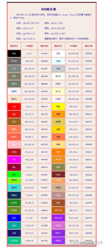 RGB图像与索引图像一样,它分别用红(R)、绿(G)、蓝(B)三原色的组合来表示每个像素的颜色。