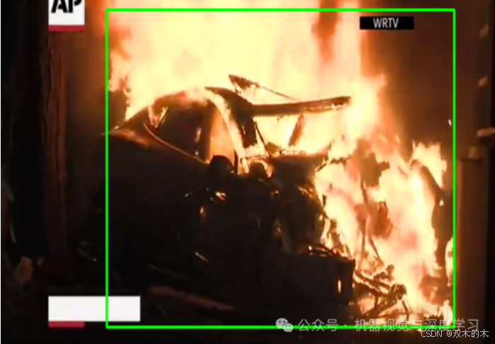 我们的系统从上述视频中检测到火灾,绘制带有警报的矩形框