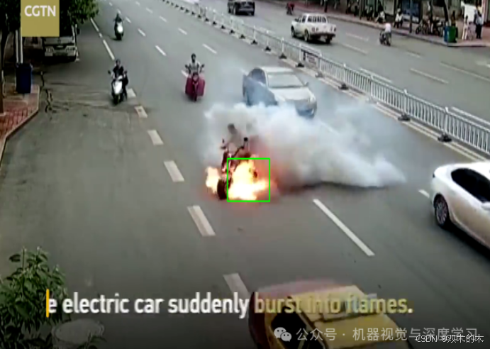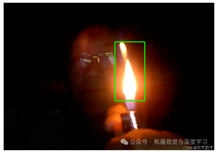 在下图中,我们可以看到系统正在检测打火机火焰绘制边界框的效果: