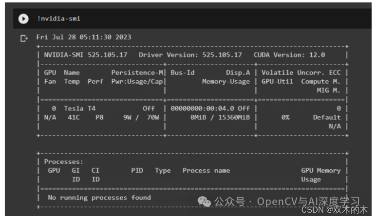 要测试我们是否有 GPU,请在 colab 上编写以下命令。