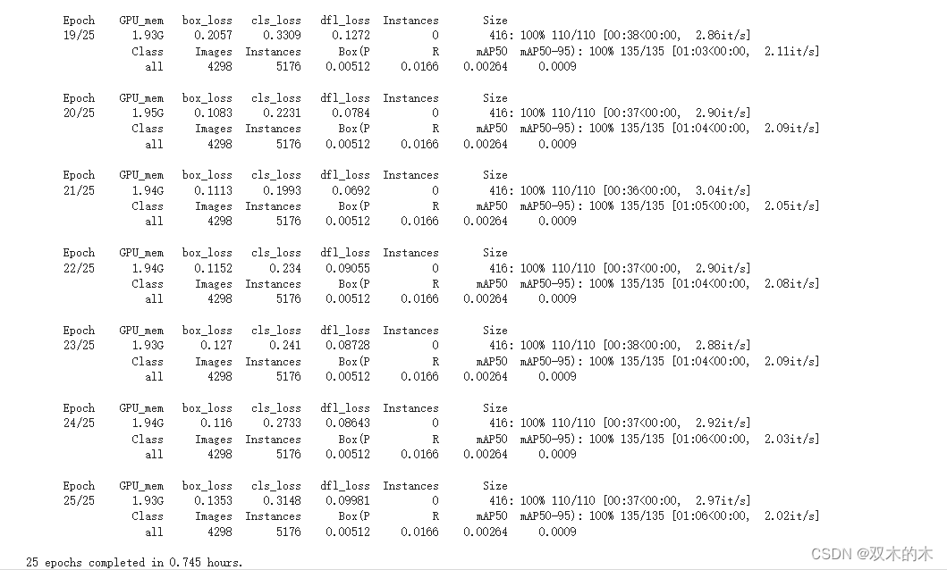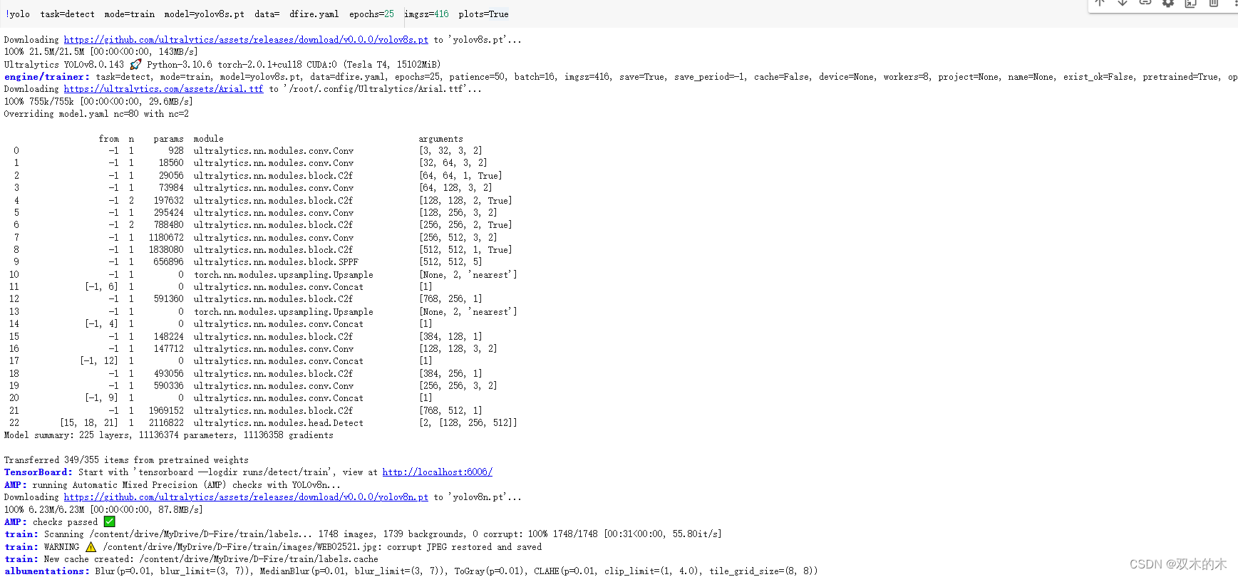 总之,此命令可能使用“dfire.yaml”中定义的数据集执行对象检测模型 (YOLOv8s) 的训练。它将进行 25 次训练迭代,将图像大小调整为 416x416 像素,并可以提供可视化来监控模型的进度。