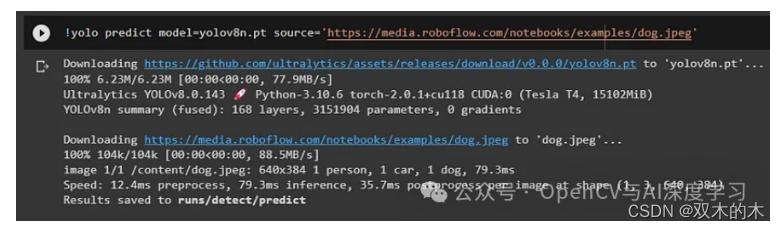 首先它会下载模型和图像,然后分别预测图像。在这里,我们从检测表中取出第一个模型——yolov8n。