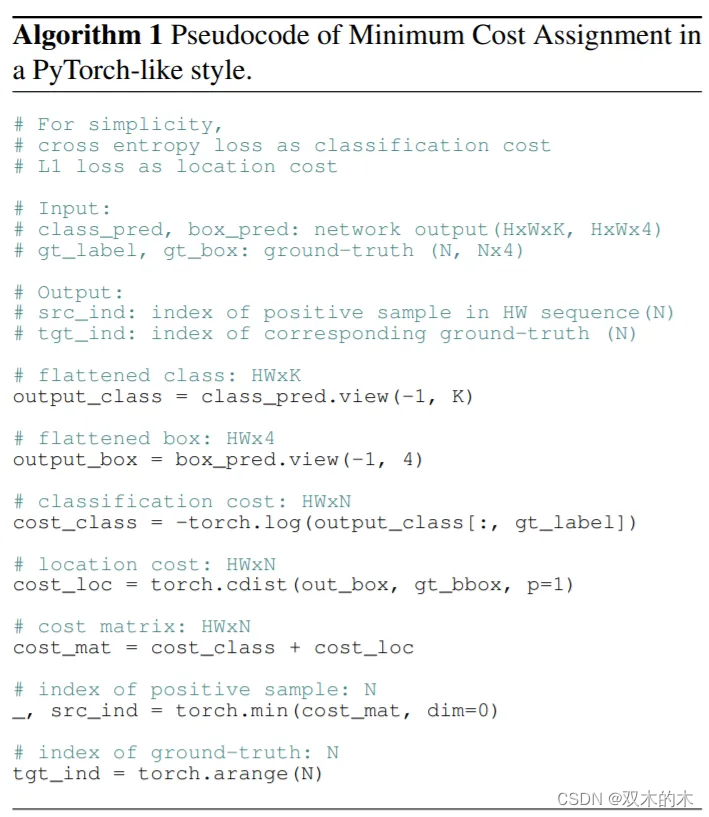 又比如 One-Net 提出的最小代价分配(Minimum Cost Assignment),即于每个 GT,仅将一个最小代价样本分配为正样本,其它均为负样本,该方法不涉及手动制定的启发式规则或者复杂的二分图匹配。这里代价是指样本与真值之间的分类代价和位置代价的总和。