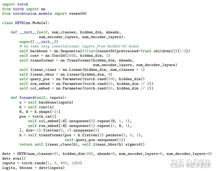 基于transformer的detr算法,作者特意强调其突出优点是部署代码不超过50行,简单至极。