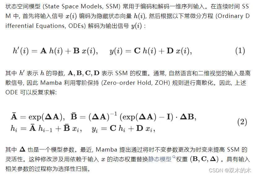 Mamba[6]是一种基于状态空间模型 (State Space Models, SSM) 的序列模型 Backbone,在语言、音频和基因组学等几种模式中显示出显著的有效性和效率。Mamba 实现了与 Transformer 相当的性能,且具有更好的推理时间和效率。与 Transformer 的二次计算复杂度相比,Mamba 在长序列建模中显示出巨大的前景,因为 Mamba 的计算复杂度与 token 的数量成线性关系。Mamba 的这些特性促使本文作者将 Mamba 作为扩散模型的新的 Backbone 引入,尤其是对于高效的高分辨率图像生成。