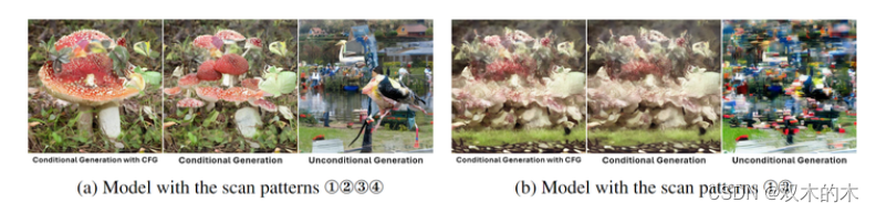 然而,当将 Mamba 与扩散模型相结合以进行高分辨率图像生成时,会出现一些挑战。主要挑战是 Mamba 的因果序列建模与图像的二维 (2D) 数据结构之间的不匹配。Mamba 架构是为序列信号的一维 (1D) 因果建模而设计的,不能直接用于建模二维图像 tokens。一个简单的解决方案是使用光栅扫描顺序将 2D 数据转换为 1D 的序列。但是,它将每个位置的感受野限制为只有光栅扫描顺序中的先前位置。此外,在光栅扫描顺序中,当前行的结尾后面是下一行的开始,它们之间不共享空间连续性。第二个挑战是,尽管 Mamba 具有高效推理的优势,但在高分辨率图像上训练基于 Mamba 的扩散模型的训练代价依然昂贵。