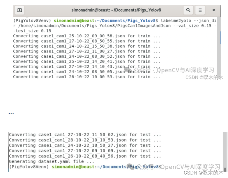 运行以下命令创建yolov8dataset(将目录更改为指向您自己的目录)