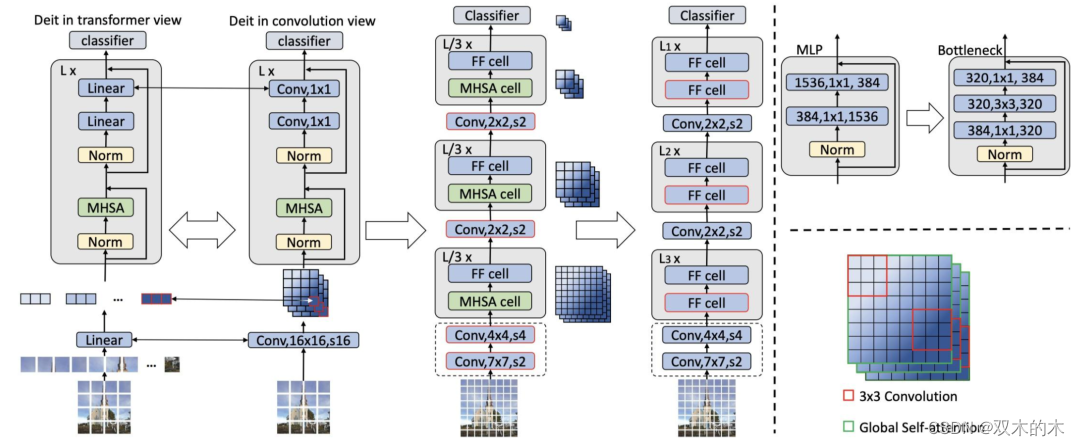 为了解决这个问题,研究者探讨了如何更快地使用Vision transformers,试图找到设计高效transformer架构的原则。基于主流的Vision transformers DeiT和Swin,系统地分析了影响模型推理速度的三个主要因素,包括内存访问、计算冗余和参数使用。特别是,发现transformer模型的速度通常是内存限制的。
