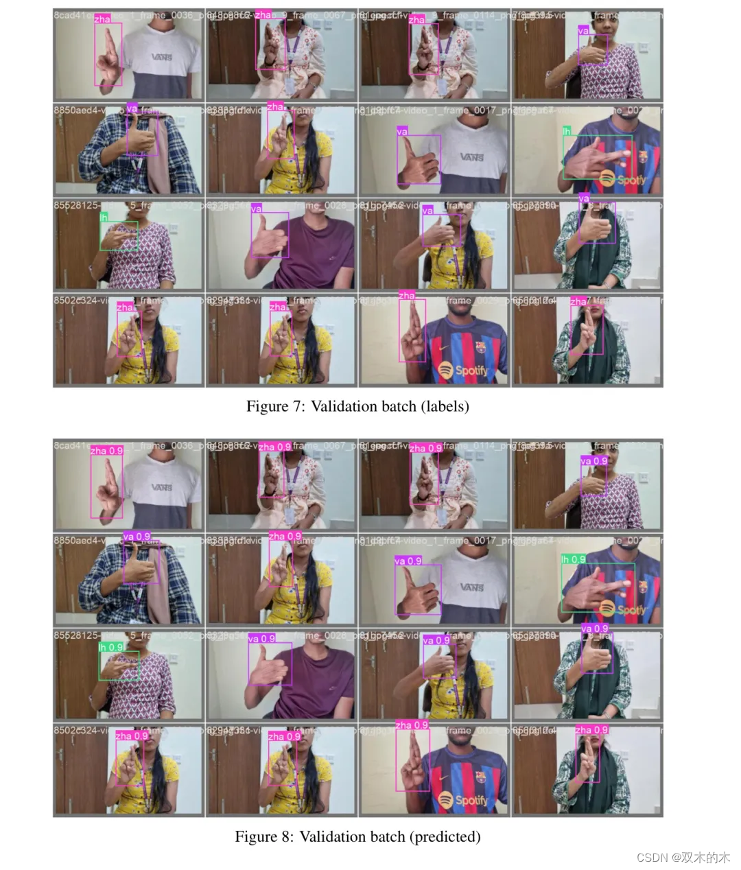 62%,验证准确率为92.35%。YOLO是一种最先进的目标检测算法,因其实时处理能力而受到欢迎,能够在单次传递中准确地识别和定位图像或视频内的多个目标(Redmon等人,2016年)。YOLOv8是这个模型系列中的最新款,与早期版本相比,其准确度、速度和多功能性都有所提升。Tyagi等人(2023年)探讨了将这些模型应用于检测美国手语(ASL)手势。它比较了不同的YOLO版本,强调YOLOv8在精确度和平均精度(mAP)方面的优势。该模型在美式手语字母数据集上进行训练和测试,实现了95%的精确度,97%的召回率,以及96%的mAP@0.5。Jia和Li提出了一种增强的SLR-YOLO网络,用于高效的手语识别。