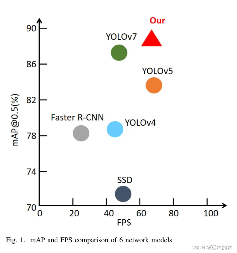 此外,网络模型引入了AS-SE模块,并引入了CBAM模块,这增加了部分计算量,导致与原始YOLOv5s模型相比,模型的检测率有所下降。然而,总的来说,所提出算法的FPS高达68,这仍然在检测速度方面提供了显著优势。