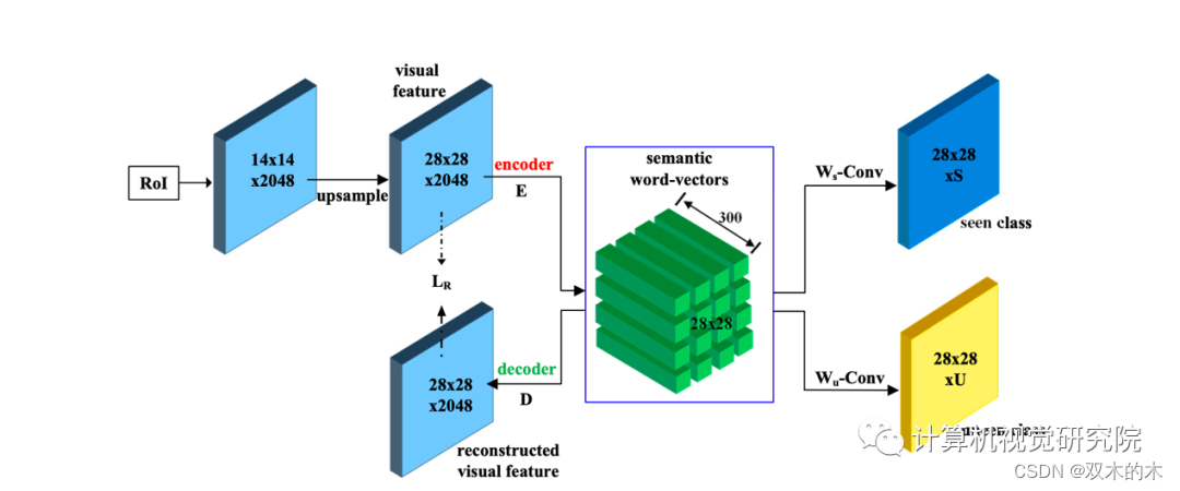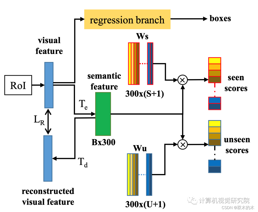 零样本检测器的设计细节如下图所示,采用了编码-解码结构,在测试/推理时只是用解码器的Te。