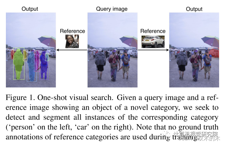 该文聚焦在一个前沿的问题:给一个包含了未知种类多个实体的没训练过的新样本(the query image),如何检测以及分割所有这些实例。这个问题和现实应用密切相关,因为检测/分割的落地场景中不可能有类似MS-COCO或者OpenImages之类数据集包含了非常多的实例,现实任务中的实例是穷举不完的,如何从有限种类和数量的样本中学习到一些知识并推演到新的种类中是很具有挑战和实际意义的。该问题的研究大多还是停留在分类任务上,检测和分割少。