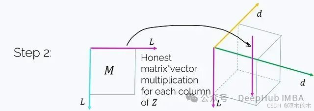步骤2. 将M乘以这个张量(注意不是元素级乘法)。M乘以Z沿着洋红色轴t的每个"列"。