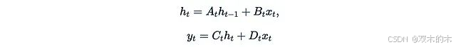 在离散形式中,SSM本质上是一个带有跳跃连接的复杂线性RNN。为了简化后续讨论,我们甚至可以通过设置D_t = 0来忽略跳跃连接。