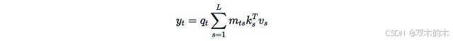 这意味着第i个值是通过"第t个查询对第i个键的注意力权重"来加权的。