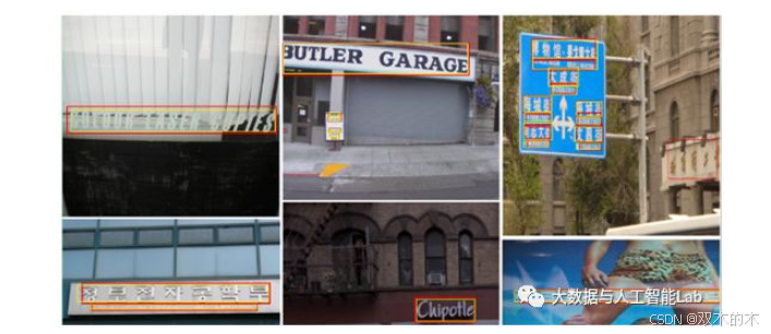 对于印刷字体的检测,由于排版很规范,现在的检测、识别技术已经很成熟了,我们日常使用的微信、QQ里面就有提取图片中文字的功能。而对于自然场景下的文字检测,由于光照环境以及文字存在着很多样的形式,要将文字检测出来则有比较大的难度,例如要检测出大街上广告牌中的文字,如下图: