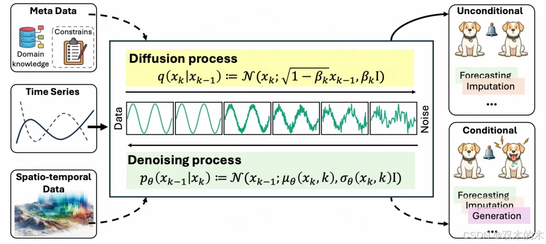 扩散模型在时间序列中的应用,在最近两三年一直是一个研究热点。特别是在今年Sora等生成式大模型发布后,扩散模型和时间序列的结合更加紧密。并且,今年相关领域中,重点研究了如何针对时间序列生成的特有问题,对扩散模型中的各个模块进行优化升级,让扩散模型更适配时间序列这种低密度、高不确定性的数据形式。