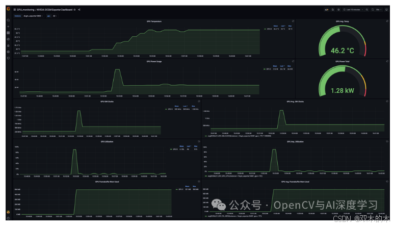 为了简化 GPU 指标收集和可视化,我们将利用一个集成 Prometheus、Grafana 和 DCGM 的优秀开源项目。该项目提供了一个预配置的 Docker Compose 文件,用于设置所有必要的组件: