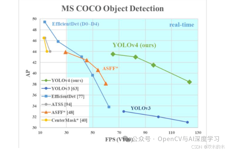然而,这还不是全部,YOLOv4 在 BoS 和 BoF 中使用了许多其他技术,例如作为 BoS 一部分的骨干网的 Mish 激活和跨级部分连接 (CSP)。所有这些优化修改为 YOLOv4 带来了最先进的性能,尤其是在速度和准确性方面。