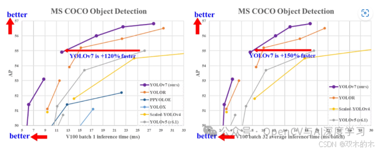扩展和复合缩放:YOLOv7 为对象检测器提出了“扩展”和“复合缩放”方法,可以有效地利用参数和计算。