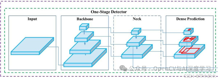 主干是特征提取部分,通常是跨层学习特征的 CNN。然后,neck 对从 backbone 的不同级别提取的特征进行细化和组合,从而创建丰富且信息丰富的特征表示。最后,head 执行实际预测,并输出边界框、类概率和对象性分数。