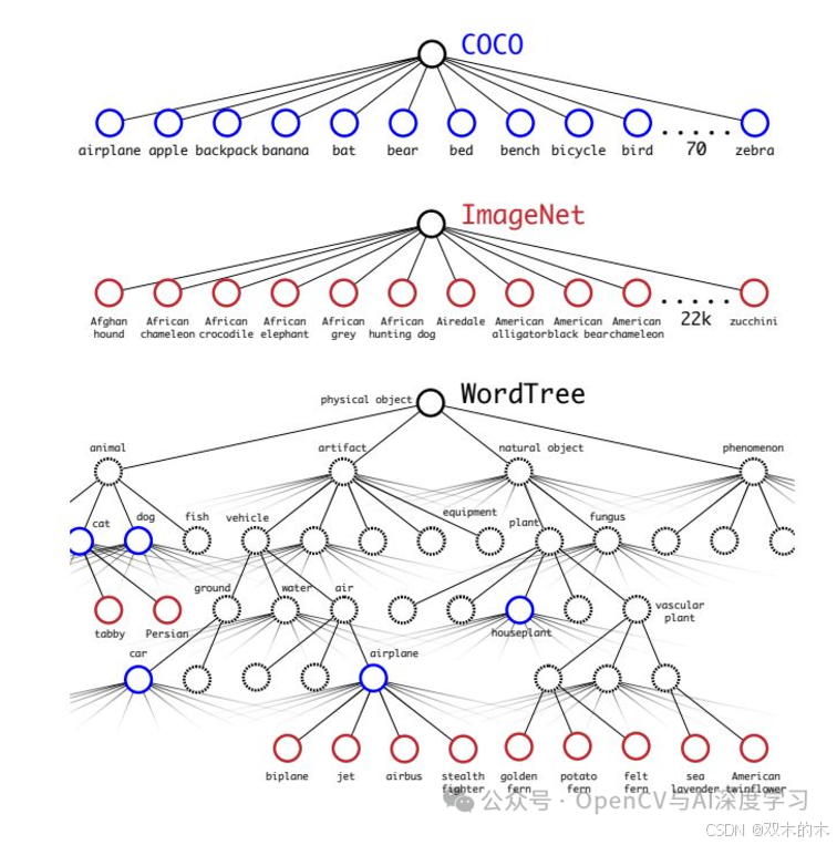 分层分类:YOLO9000 中使用的一种基于 WordTree 结构的方法,允许增加对看不见对象的泛化,并增加对象的词汇量或范围。