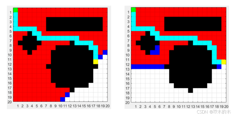 在Nav2中,全局规划算法以插件的形式设置于行为树XML文件中,常见的算法有A*和Dijkstra,两种算法的效果对比如图3所示。