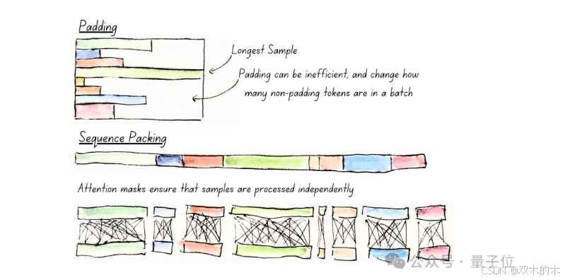 二是使用Unpadding和Sequence Packing,减少计算浪费。