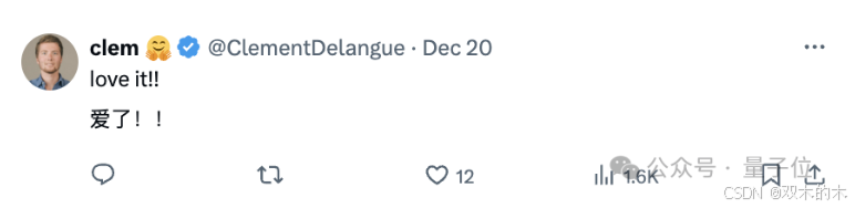 抱抱脸联合创始人兼CEO Clem Delangue都来捧场,直呼“爱了!!”。