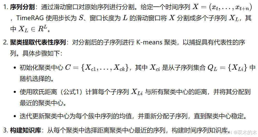 为了构建时间序列知识库,TimeRAG 采用以下步骤: