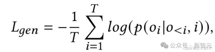其中,𝐿𝑔𝑒𝑛为CSFT损失,𝑇是输出序列的长度,𝑜𝑖表示输出序列𝑜中的第𝑖个标记,𝑖是输入序列。