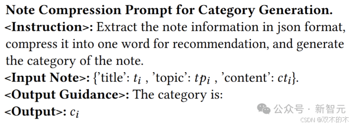 研究者用以下提示模板,实现了对笔记的通用压缩以及标签和类别的生成: