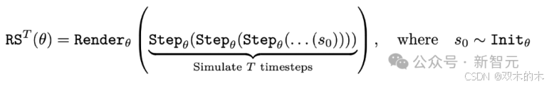将这些项连接在一起,定义一个函数θ,它对初始状态 S_0 进行采样,运行模拟T步,并将最终状态渲染为图像:
