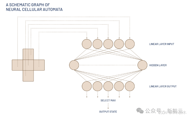 通过用神经网络表示局部转换函数,来参数化任何连续的元胞自动机。该基质是神经网络的权重空间。