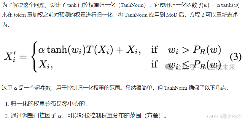 TanhNorm:用于权重归一化的tanh门控方法,确保MoD模块的正确初始化,增强训练稳定性并解决推理时的数值稳定性问题。