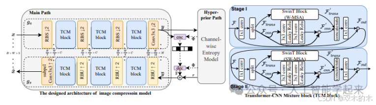 方法:本文提出了一种结合卷积神经网络和Transformer的混合架构,用于学习图像压缩。文章设计了高效的Transformer-CNN混合块,通过并行处理CNN的局部特征和Transformer的全局特征,提升了图像压缩的性能。
