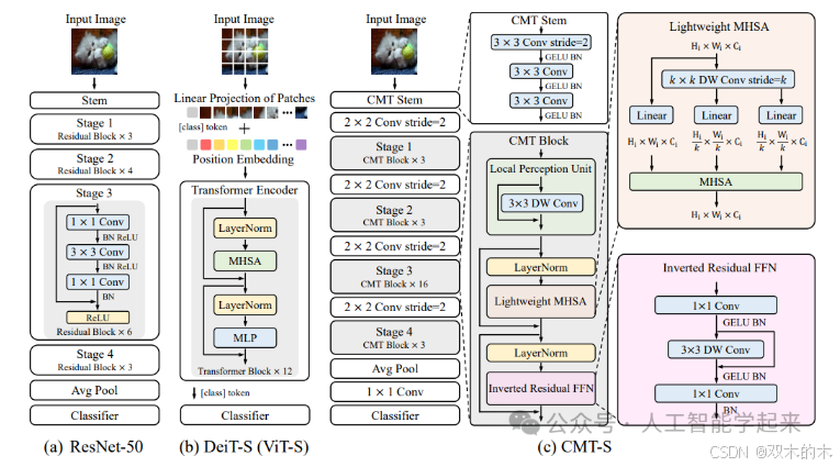 CMT是首个将CNN和Transformer结合的混合架构,旨在充分利用两者的优势,同时解决纯Transformer在视觉任务中的局限性。
