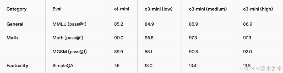 普通知识问题:o3-mini 在各个一般性知识领域的评估中都优于 o1-mini。