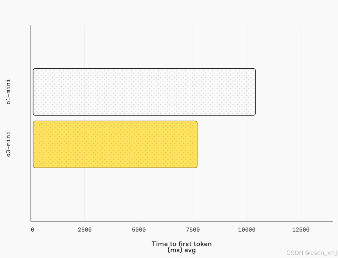 延迟:o3-mini 的首个 token 生成时间平均比 o1-mini 快 2500 毫秒。