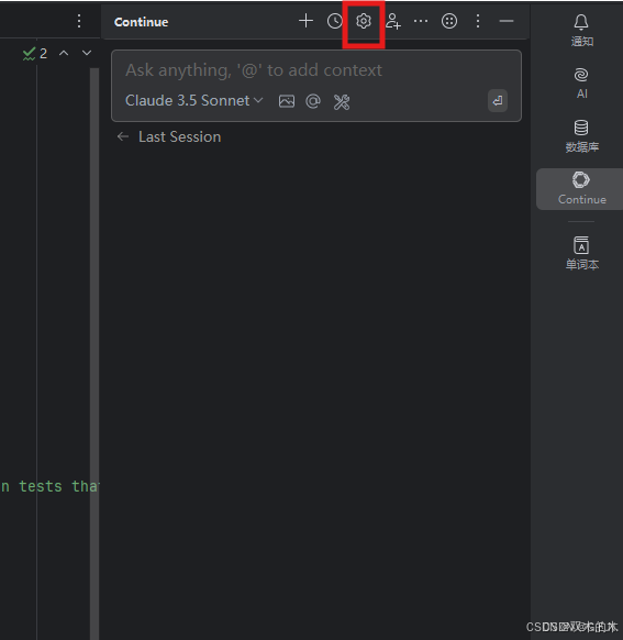 插件安装成功后,在右侧的标签栏中,会显示一个Continue的标签,我们点击即可进入,随后点击设置按键,如下图。