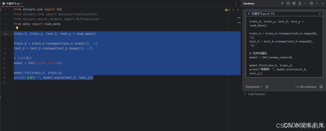 接下来,我们把DeepSeek接入到PyCharm中,并利用其能力辅助我们进行代码开发。