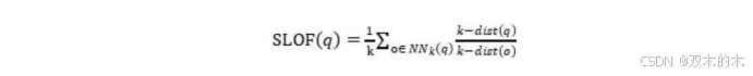 SLOF(简单局部离群因子):在 k-dist 基础上做进一步衡量。对于某个数据点 q,SLOF 定义如下:
