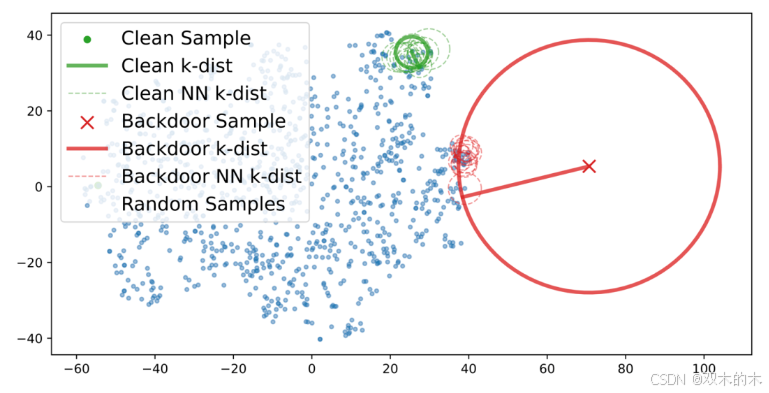 图1:干净和后门样本嵌入的t-SNE可视化结果