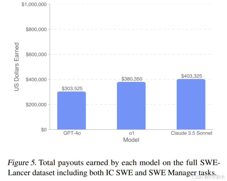 如图 5 所示,在完整的 SWE-Lancer 数据集上,没有一个模型能获得 100 万美元的全部任务价值。
