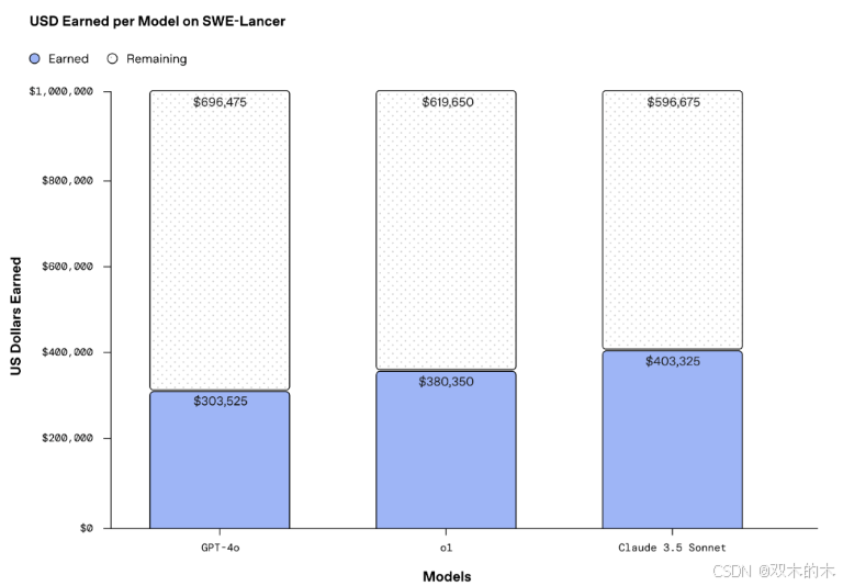 这意味着,如果大模型能够全部完成这些任务,则可以像人类一样获得百万美元报酬。