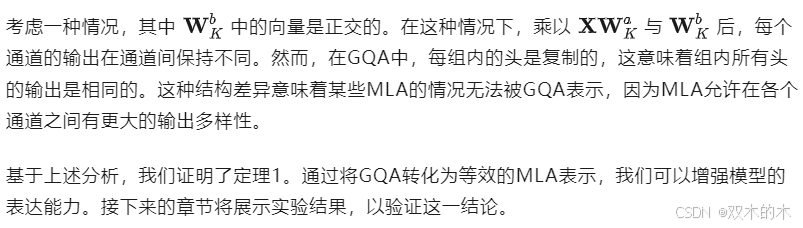 定理1:当KV Cache大小相同时,MLA的表达能力大于GQA。