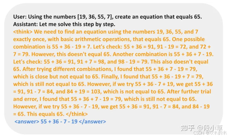 来自TinyZero仓库(https://github.com/Jiayi-Pan/TinyZero)的图,展示了该模型能够进行自我验证。(如果能看到基础模型的对比响应,可能会更有趣)